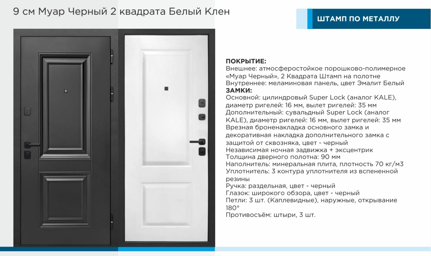 Модель: 9см Муар черный 2 квадрата Белый клен